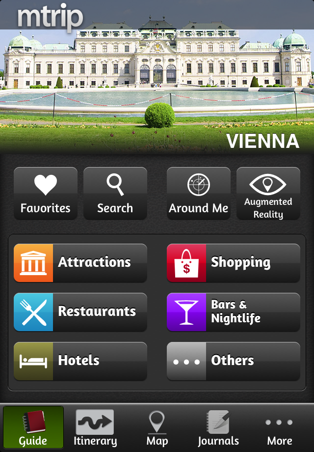 Description:♛ 9/10 in WIRED’s 2012 App Guide ♛ Selected as an Honoree in the 2012 Webby Awards ♛ Featured in CNN’s 50 Ultimate Travel AppsALSO FEATURED BY: The New York Times, Los Angeles Times, msnbc, ABC News, Wall Street Journal, USA TODAY, The Washington Post, Travel + Leisure…UNIQUE FEATURES:✔ 100% OFFLINE – NO INTERNET CONNECTION REQUIRED except for sharing and updates.✔ TRAVEL GUIDE with attractions, museums, restaurants, bars, hotels, theatres and shops with TRAVELER REVIEWS and RATINGS, pictures, rich travel info, prices and opening hours.✔ PERSONALIZED TRIP ITINERARIES ★ Exclusive technology ★ The Trip Genius automatically creates personalized trip itineraries according to your travel interests, pace preference, trip dates, accommodation, personalized favorites, location and opening hours of places as well as ratings from other travelers. Use smart order to rearrange your visits and customize your itinerary at any time.✔ OFFLINE MAP & DIRECTIONS ★ The only guide with offline navigation! ★ Have the guide locate you on the map and provide you with directions to a place by foot or by subway. Use all map and direction features 100% offline with no roaming fees! ✔ AUGMENTED REALITY - View your environment and all the places to visit in real-time, with distance, ratings, prices and opening hours.✔ TRIP JOURNAL ★ NEW FEATURE ★ Easily create and share a trip journal with your check-ins, pictures, and comments!✔ SHARING – Share your check-ins, postcards, pictures, reviews and trip journal by email or Facebook. Items are stored on your device and sent automatically when a free internet connection is available!✔ TRIP DASHBOARD ★ NEW FEATURE ★ Available at www.mtrip.me, the trip dashboard gathers your trip journals, itineraries, and favorite places from all of your destinations in one place. You can share it with friends and print your itineraries!✔ TRANSFER YOUR ITINERARY between devices and back them up online ★ NEW FEATURE ★ ✔ OTHER FEATURES – Send pictures and postcards by email or Facebook, easily discover new places, currency converter, subway map, add personal places and more!To explore mTrip’s other destinations please visit www.mtrip.commTrip’s Vienna Travel Guide is available in: English, French, German, Spanish and ItalianMTRIP IN THE NEWS!♛ LA TIMES - “App maker mTrip's signature Genius will generate an itinerary for you based on your preferences”♛ NEW YORK TIMES - “Travelers with iPhones should add mTrip to their augmented reality specialty apps list”♛ THE WALL STREET JOURNAL - “These next-gen travel guides can take care of stress-inducing itinerary-planning in Asia, Europe and the U.S."♛ ASSOCIATED PRESS - “The new iPhone application mTrip is a travel guide and then some: It uses the latest in smart phone technology to make it easier to stay on track in a foreign locale”♛ IPHONE LIFE - "Don't travel without them” ♛ TECH VIBES - "Actually knowing what I'm doing and where I'm going in a world otherwise new to me... priceless"For any questions please contact support@mtrip.com. We are happy to answer your questions.